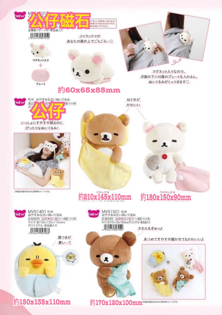 《預訂貨品》全新rilakkuma睡覺系列 公仔型磁石!公仔(全4款) 接受預訂中! 約11月下旬到貨