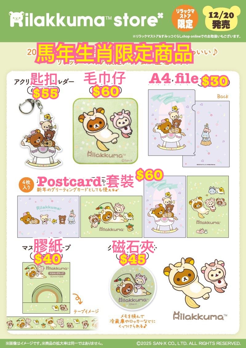 《預訂貨品》全新日本專店限定 Rilakkuma 馬年生肖造型雜貨